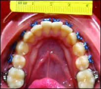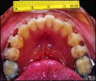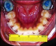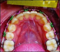 | A case showing reduction of an Irregularity index of 4 in 4 months of treatment with an 0.018 BioMers wire. | |